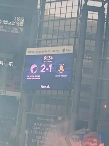 Das Spiel verlief holprig. Brøndby ging etwas überraschend mit 1:0 in Führung. Diese hielt aber nur etwa zehn Minuten, bis Viktor Fischer (Fußballgott) den Ausgleich erzielte. Zur Halbzeit gab es noch einmal eine schöne Pyro-Einlage von den Kopenhagenern. Von Brøndby wurden leider meistens nur einzelne Fackeln gezündet. Etwas schade und verschenktes Potenzial in meinen Augen. In der zweiten Halbzeit passierte nicht sonderlich viel. Es lief bereits die Nachspielzeit, als Viktor Fischer (Fußballgott) die 2:1-Führung erzielte. Das Stadion tobte. Es war unbeschreiblich. Eine wirklich sehr geile Erfahrung, was die Fans vom FC Kopenhagen abgerissen haben.