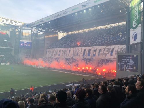 Daher wird hier der Bericht um einen Ausschnitt von einem der Reisepartner ergänzt: Die Nacht war aufgrund der abendlichen Einnahme bekannter Getränke kurz, und früh machten wir uns auf den Weg zum Treffpunkt des Derby-Marsches. Wegen der abendlichen Geschehnisse waren wir spät dran und mussten bereits hören, dass sich der größtenteils schwarz gekleidete Mob schon in Bewegung gesetzt hatte. Vereinzelte Böller und wenige Schlachtrufe gegen Brøndby waren auf dem 20-minütigen Weg Richtung „Parken“ zu vernehmen, großartige Emotionen oder gar Aggressionen waren jedoch nicht spürbar, sodass die etwa 2000 Mitlaufenden entspannt am Stadion ankamen. Das Mitlaufen kann man hierbei fast wörtlich nehmen, der Marsch war in einem Tempo unterwegs, das man aus Deutschland eher nicht kennt.