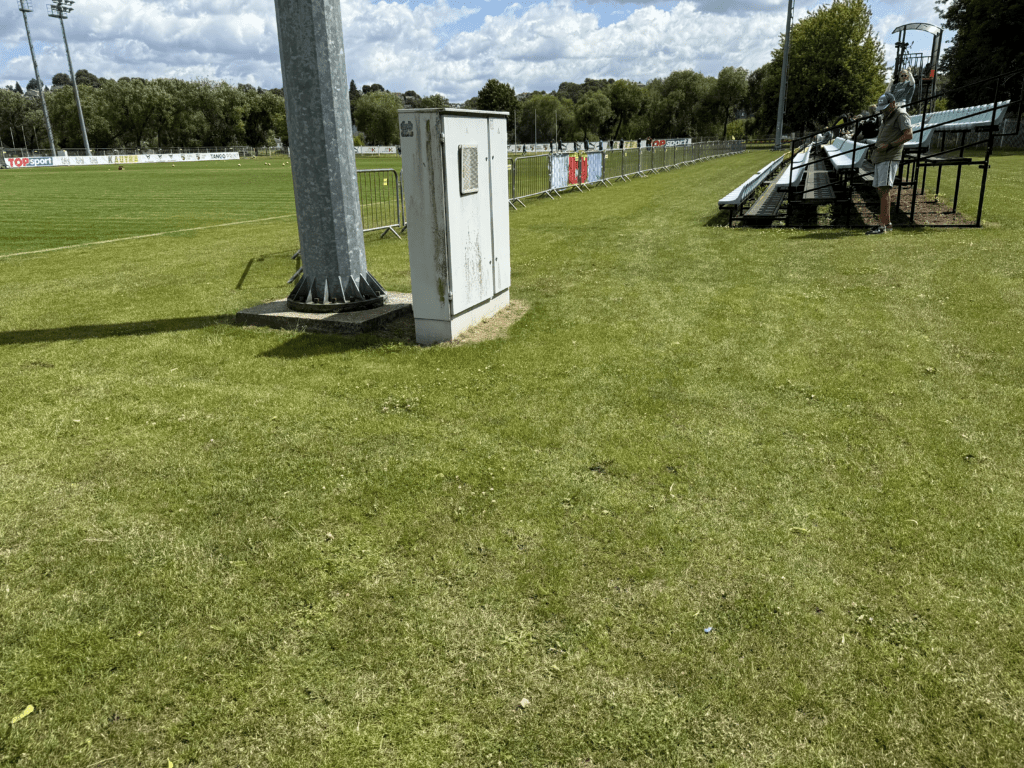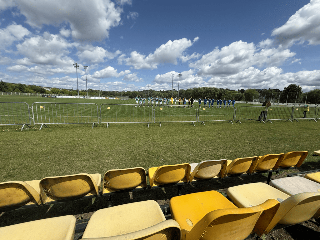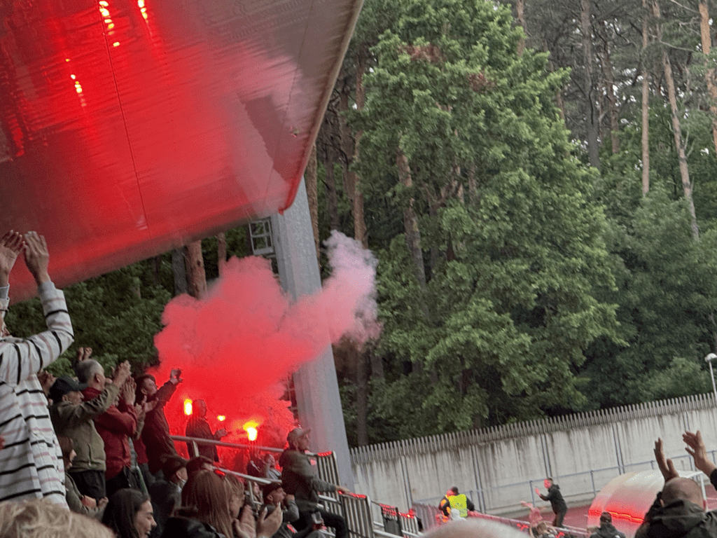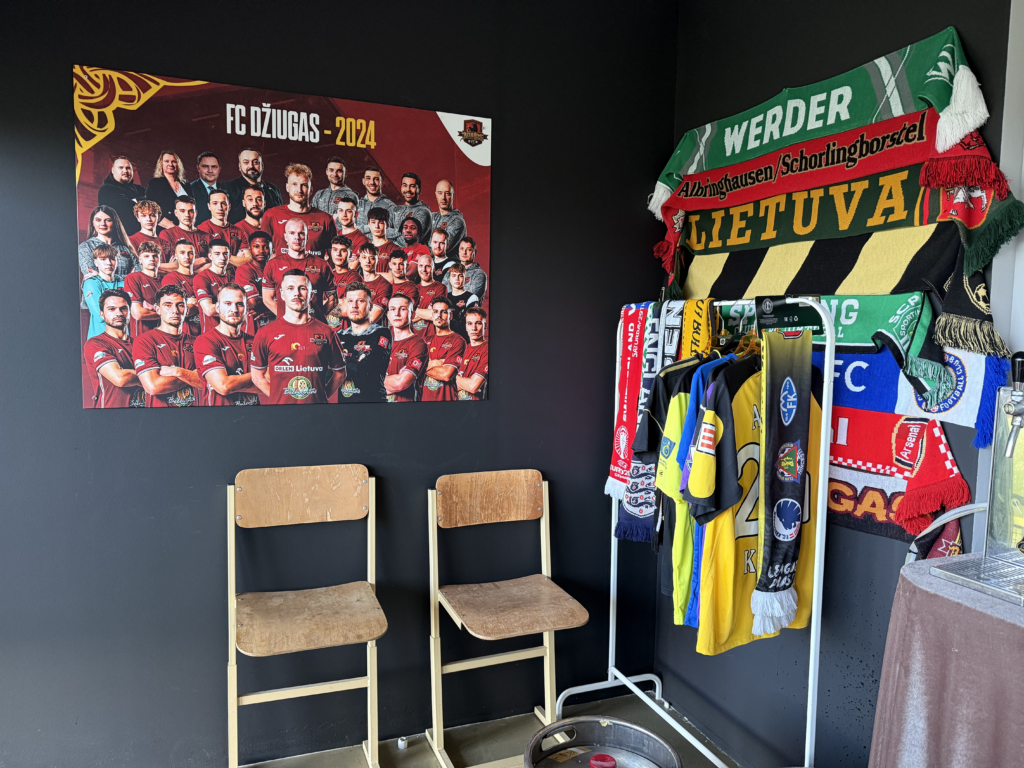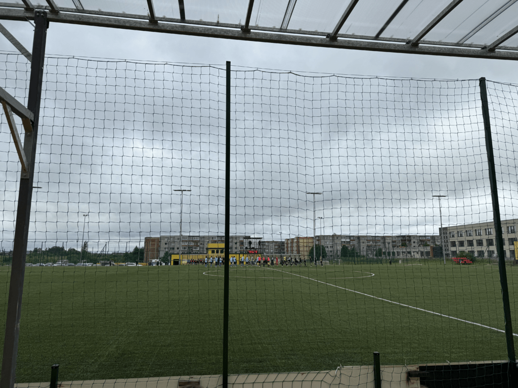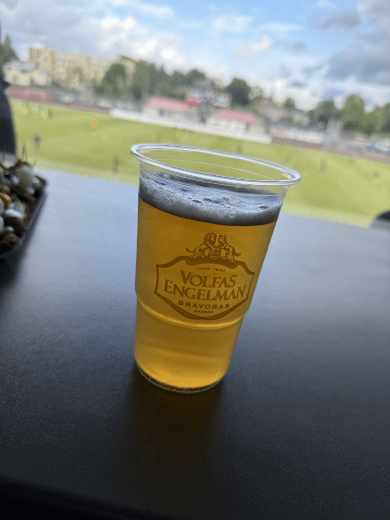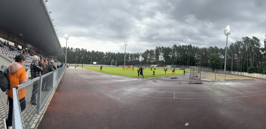 Es war endlich soweit. An einem warmen, sonnigen Montagabend, dem letzten Tag im Juni und damit auch dem Abschluss der Saison 2024/2025, sollte es geschehen: Die A Lyga, Litauens höchste Spielklasse, sollte komplettiert werden. Das Stadion, ein moderner Neubau, liegt etwa 45 bis 60 Minuten außerhalb von Kaunas. Den alten Spielort des FC Hegelmann hatte ich bereits 2023 bei meinem letzten richtigen Besuch in Litauen gesehen. Nun stand hier also der finale Spieltag an. Es war nett, dass es zu diesem Anlass sogar eine Halbzeitshow gab ( 😉 ). Dank kostenfreiem Eintritt – auf Nachfrage erfährt man, dass das hier üblich ist – fanden sich immerhin rund 700 Zuschauer ein. Die Stimmung war, wie erwartet, eher zurückhaltend. Die Gäste aus Suduva waren gut vertreten, ebenso wie etwa 15 deutsche Hopper, die an diesem Montag scheinbar nichts Besseres vorhatten.