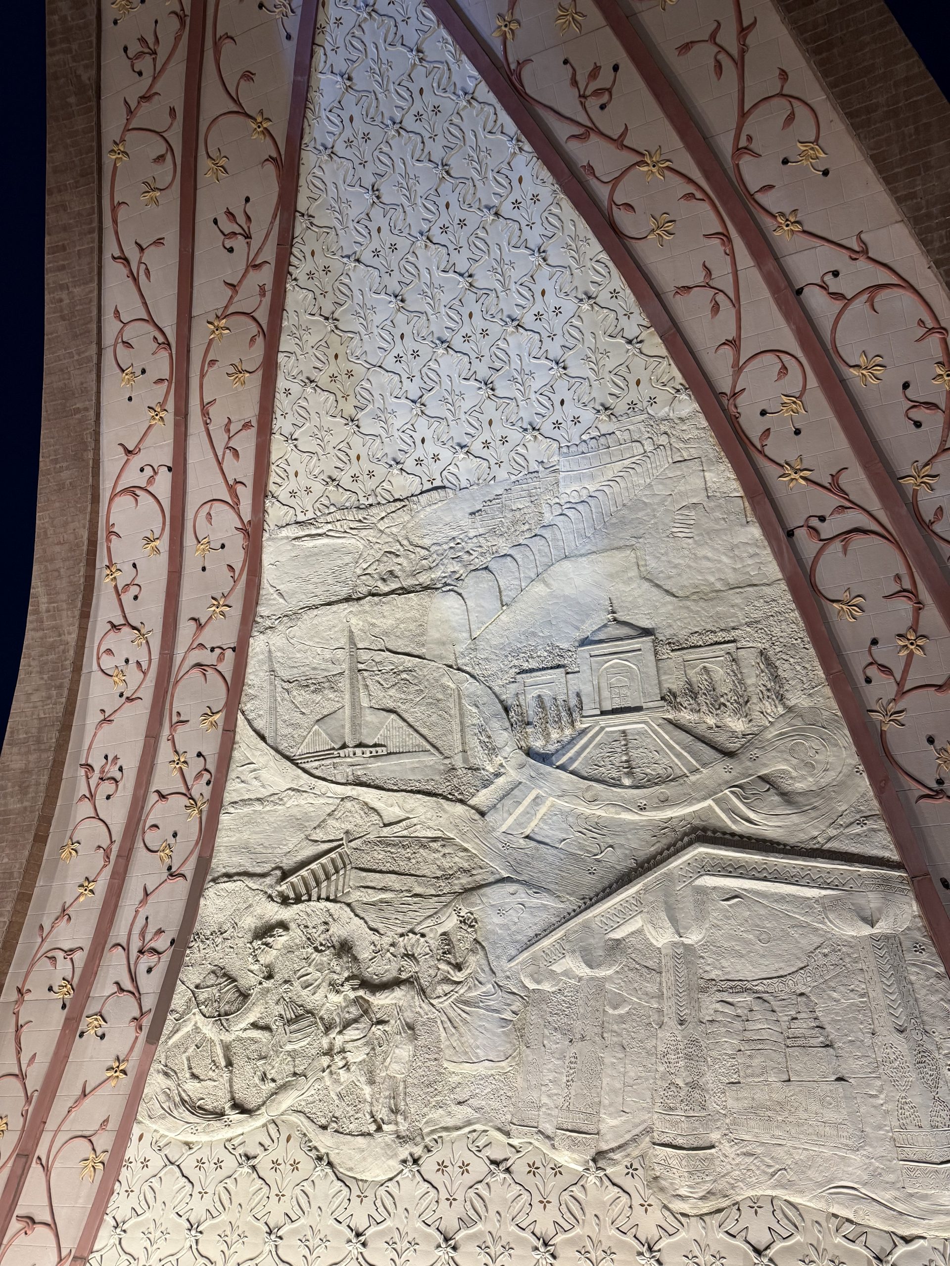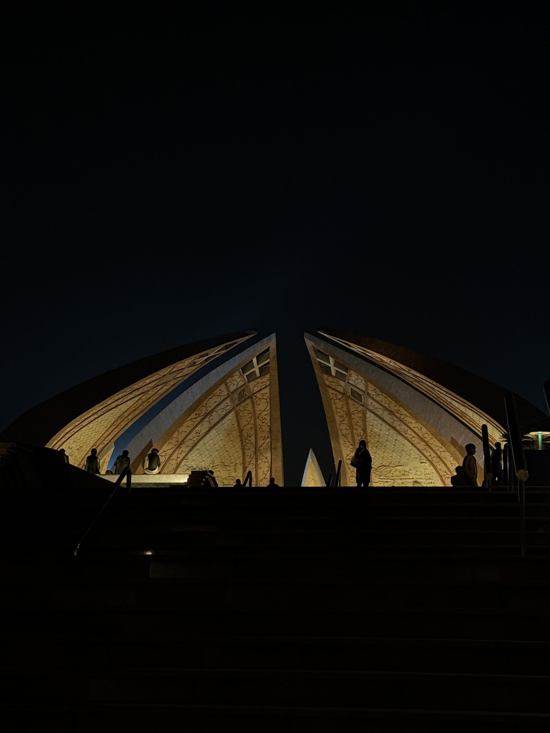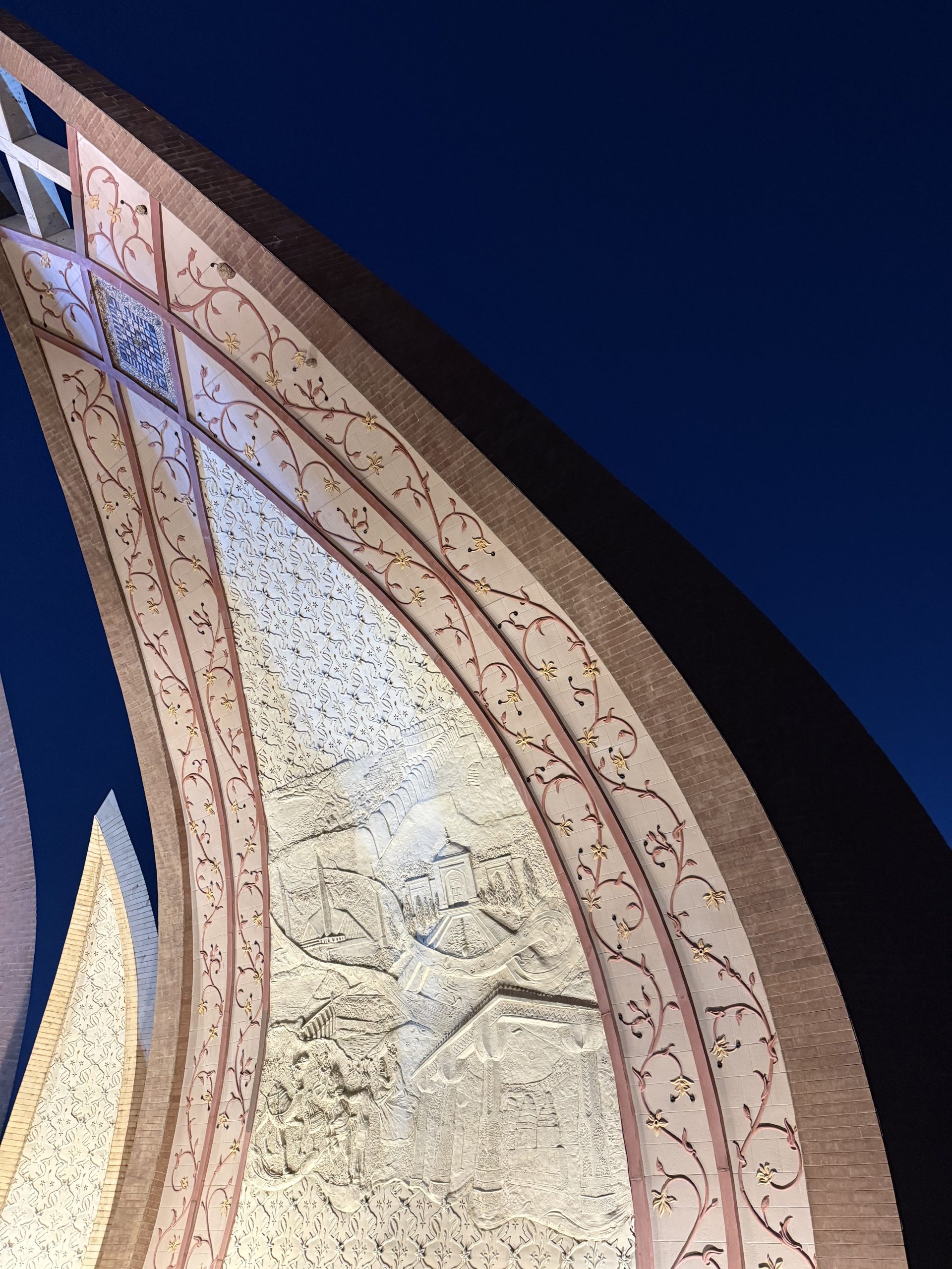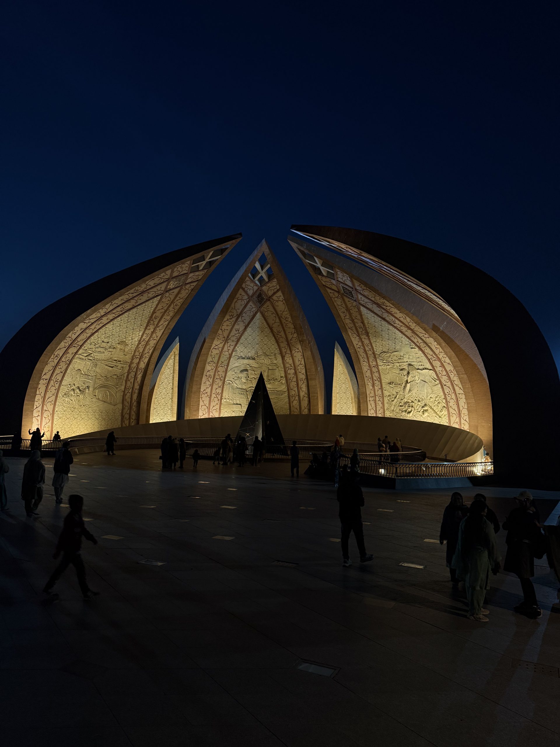 Nach dem View-Point ging es für wenige Rupien den Berg runter zum Pakistan Monument. Während wir auf einen Fahrer gewartet haben, der unser Angebot int der App von InDrive annimmt (man schlägt der selber einen Preis vor, die Fahrer schauen sich das an, können annehmen oder Gegenangebote machen. Eigentlich ein cooles Prinzip) sprach uns eine weitere weiße Person an. Erst auf Englisch, dann aber auf deutsch. Vielleicht hast Du schon mal von einem deutschen Ort in Brasilien namens Blumenau gehört? Da kommt er her. Dolmetscher und spricht 6 Sprachen. Deutsch wohlgemerkt akzentfrei, da er immer mit seinen Großeltern gesprochen hat. Seine Eltern können gar kein deutsch, wie mittlerweile 99% der dortigen Generation. Mit dem haben wir uns dann das Taxi zum Monument geteilt und eben dieses noch besichtigt.