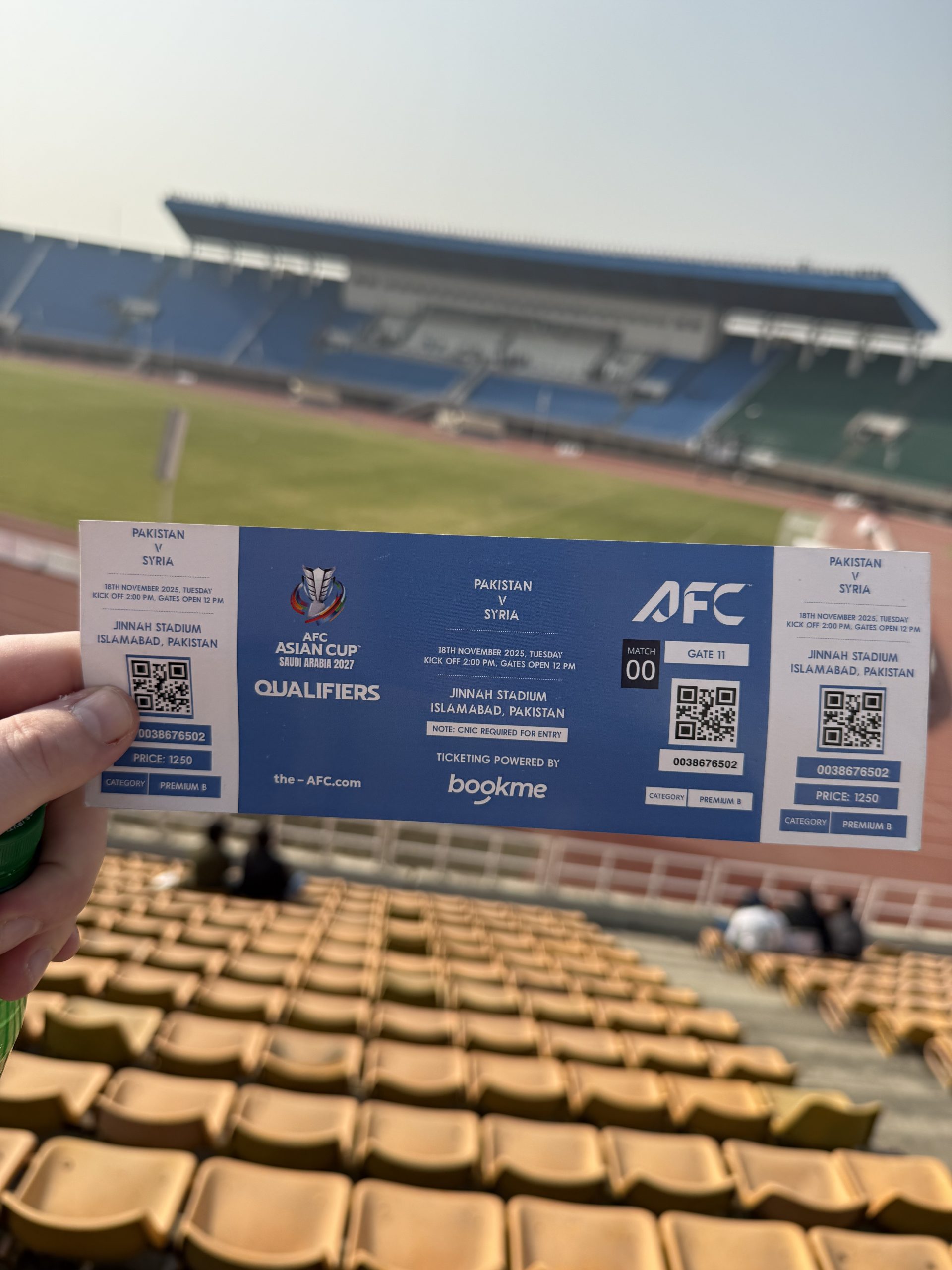 Pakistan vs. Syrien 0:5 (0:1) • Jinnah Stadium • 18.11.2025 • 1,52€/ 500PKR • Zuschauende: Laut Durchsage 7.124, realistisch sind 3000 |