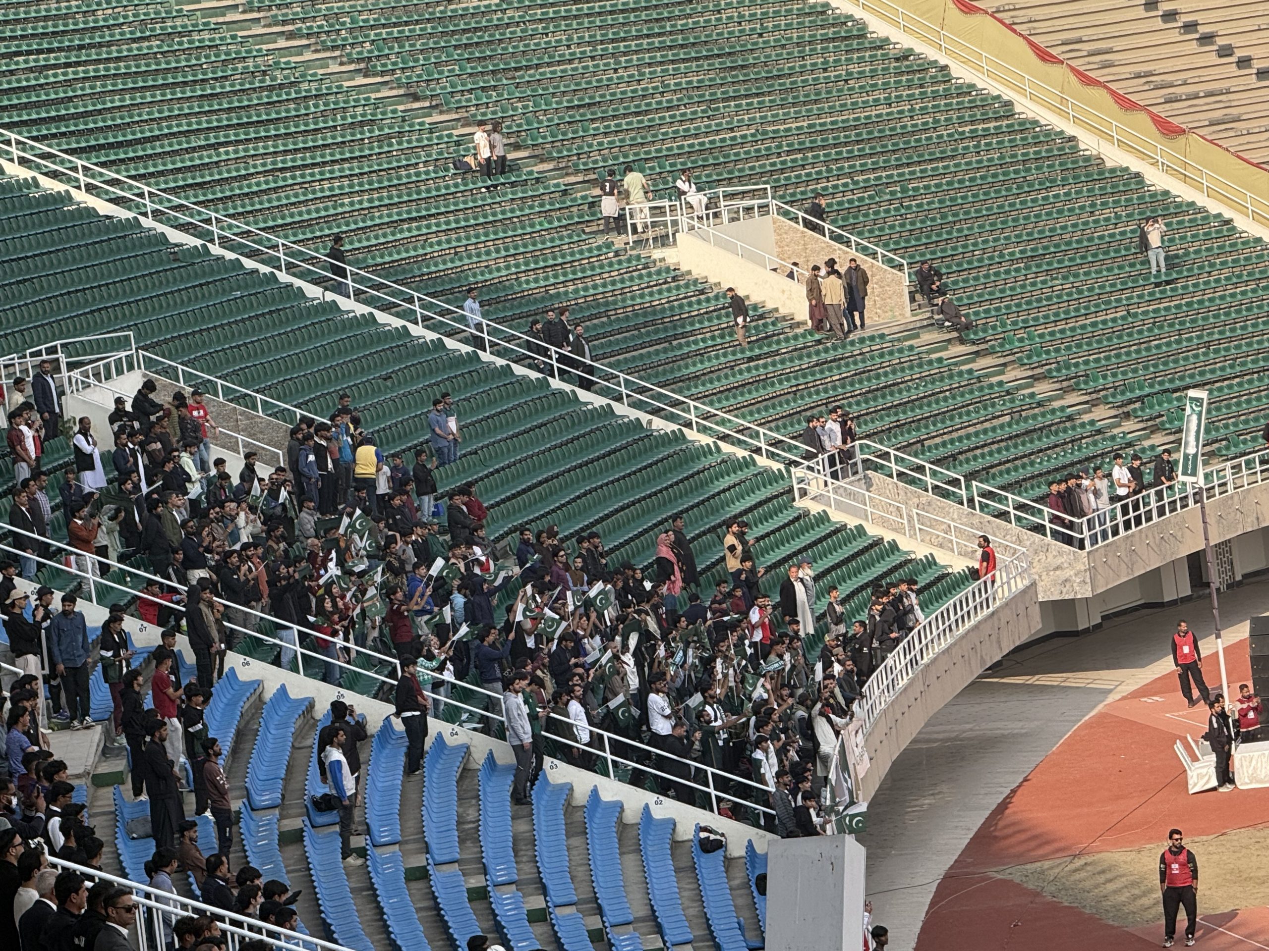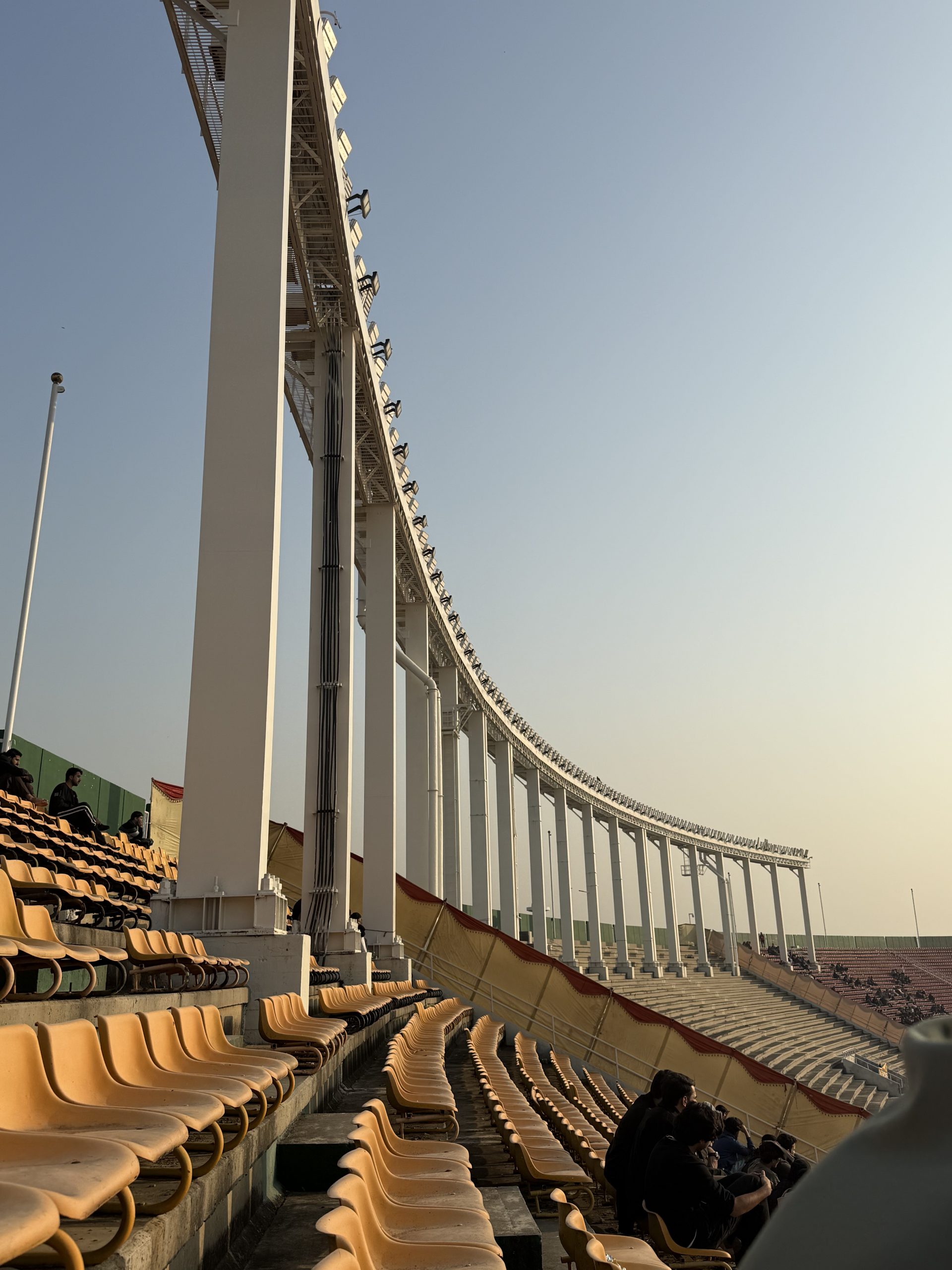 Der Einlass war unkompliziert und entspannt. Beim Einlass in den Block wurden unsere Tickets leider zerrissen. Anfängerfehler. Das ist in solchen Ländern üblich, deswegen immer 2 Tickets kaufen. Bei den Preisen auch egal. Da wir aber wie erwartet auffielen und entsprechend einige Gespräche führten, ergab es sich auch, dass wir den “Ordner” fragen konnten, ob er uns 2 neue geben kann. Und das konnte er, die nächsten zwei, die er zerrissen hätte, landeten bei uns. Praktisch: Die Tickets waren sogar für die teuerste Kategorie gültig und hätten 1250 PKR also knapp 4€ gekostet. Das nutzten wir dankend aus, da es bei der Kategorie immerhin etwas Schatten gab. Die Sonne ballert nämlich echt ordentlich in Islamabad, die 20 Grad fühlen sich schnell wie 30 an, dafür fühlen sich die 15 Grad ohne Sonne auch schnell wie 5 an.