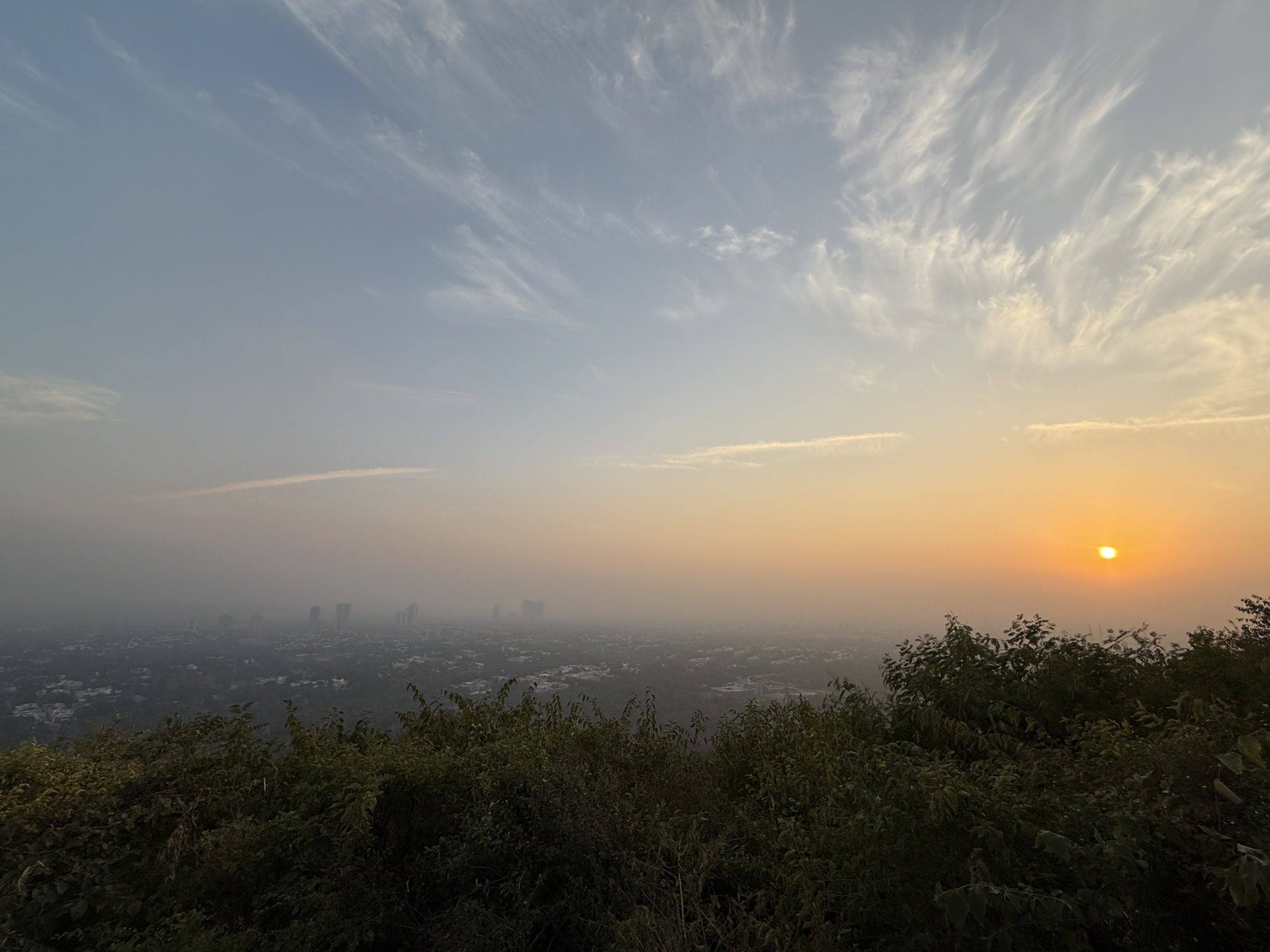 Der Aussichtspunkt kann was. Ich habe nicht allzu viel erwartet, aber die Aussicht war dennoch echt stark, auch wenn es besser gewesen wäre, wenn wir rund eine Stunde früher da gewesen wären. So waren wir schon mitten im Sonnenuntergang und eine Schicht aus Nebel und Smog hat sich bereits über die Stadt gelegt, was die Sicht minimal einschränkte.