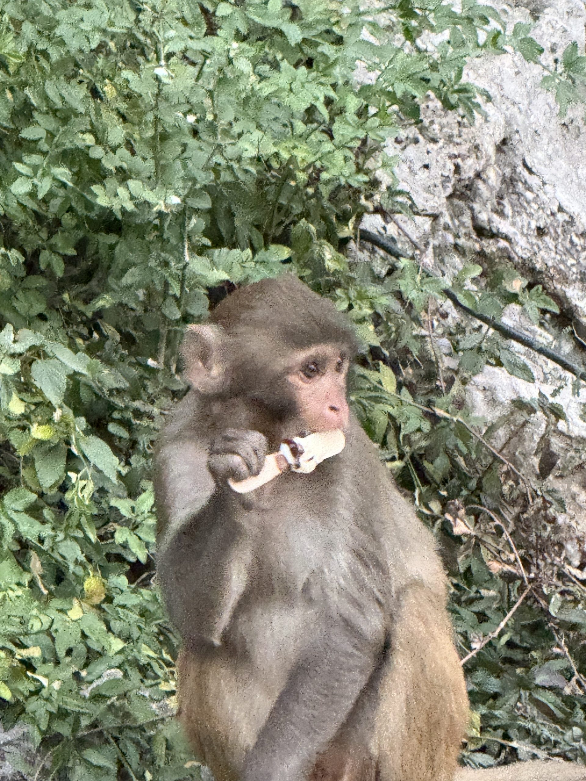 Auf dem Rückweg zum Haupteingang bzw. dann auch Ausgang allerdings kamen die ganzen Affen auf einmal aus ihren Ecken. Die sahen durchaus süß aus, gerade die baby-Äffchen. Weniger süß hingegen ist dann natürlich wieder die Situation mit dem Müll, denn man mag es kaum glauben, aber Affen essen erstmal alles. Heißt auch alles was so an Müll rumfliegt. Das wäre halt so einfach vermeidbar, aber selbst die wenigen Mülleimer die es in den Bezirken oder auch am Daman-e-Koh View-Point gibt, werden leider wenig bis gar nicht benutzt.